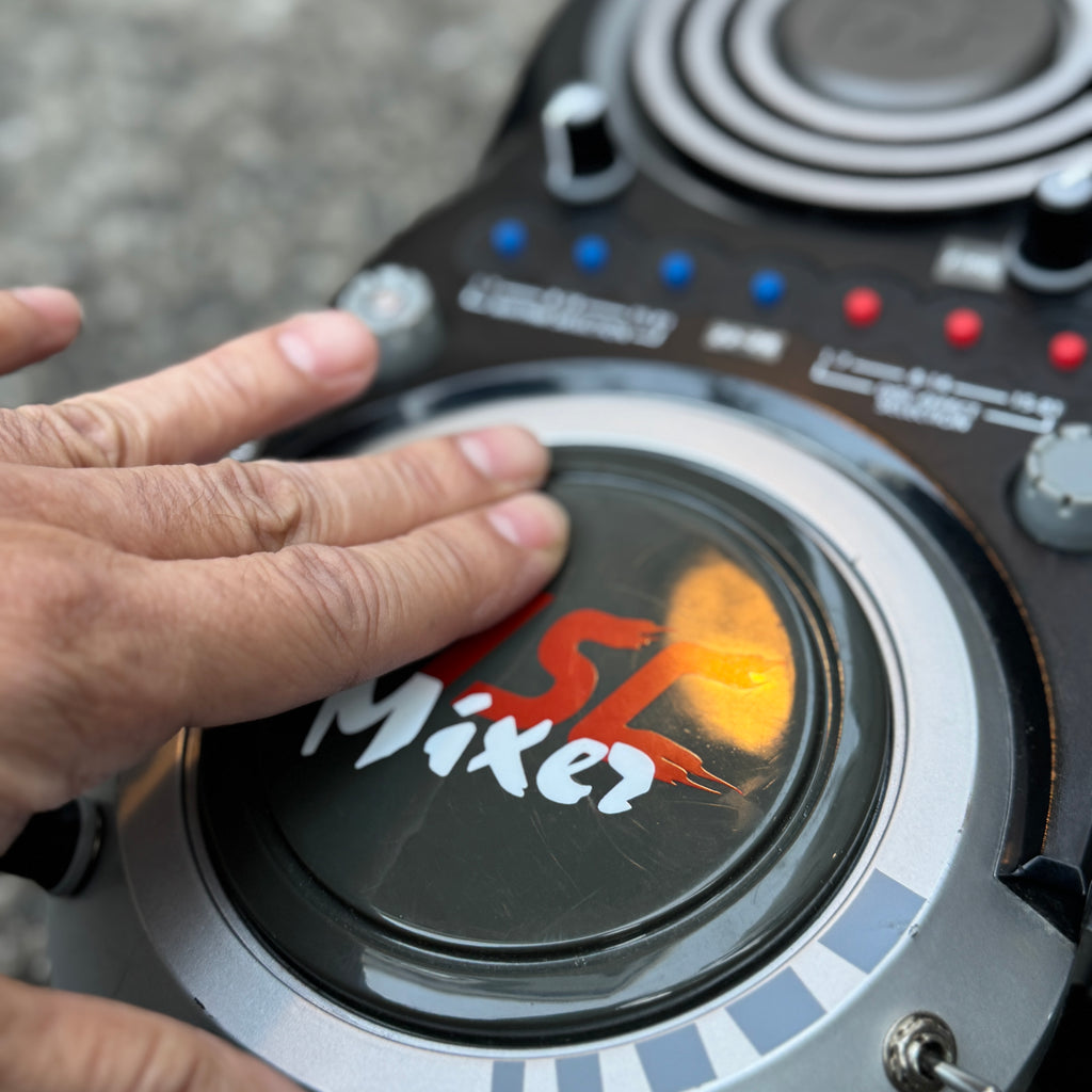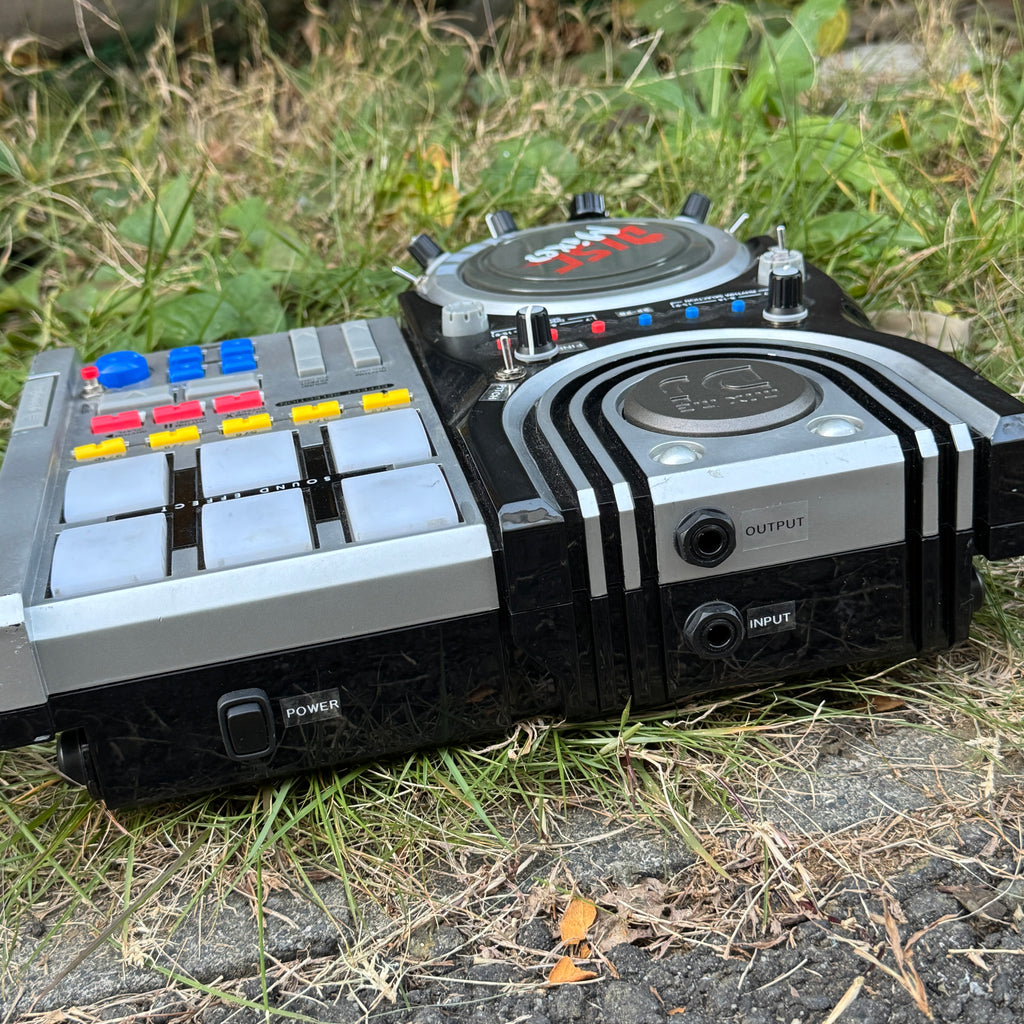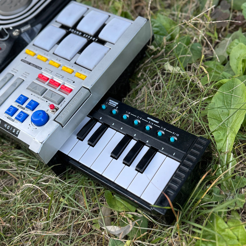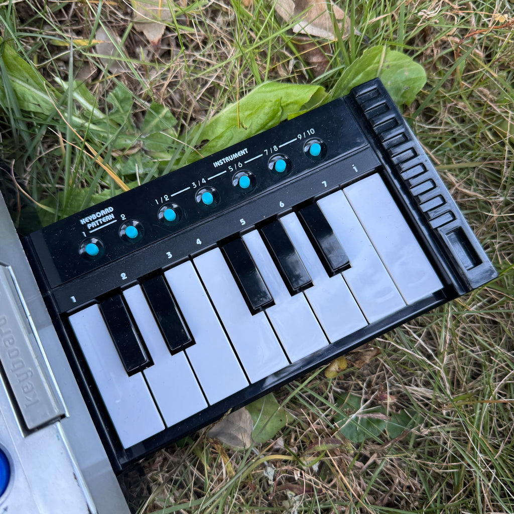 追いつこうとして混乱し、ノイズの多いグリッチが多く発生します。 また、何らかの理由で元のおもちゃから取り残され、通常の方法ではアクセスできない8つの隠されたビートにアクセスするためのボタンもインストールされました。 なんでそんな事をするのか?切替可能な光センサーはテルミンとは違って何かのために設置されています。最も高いピッチ設定に設定し、あなたの手を振ってグリッチをオン/オフするのはとても楽しいです。飛び出るキーボードも付いていて番長クラスのデカさです。何が何だかわからないけど、知能を超えた純ノイズが怒涛のように押し寄せて。理由なんて何ひとつないミックスミー。