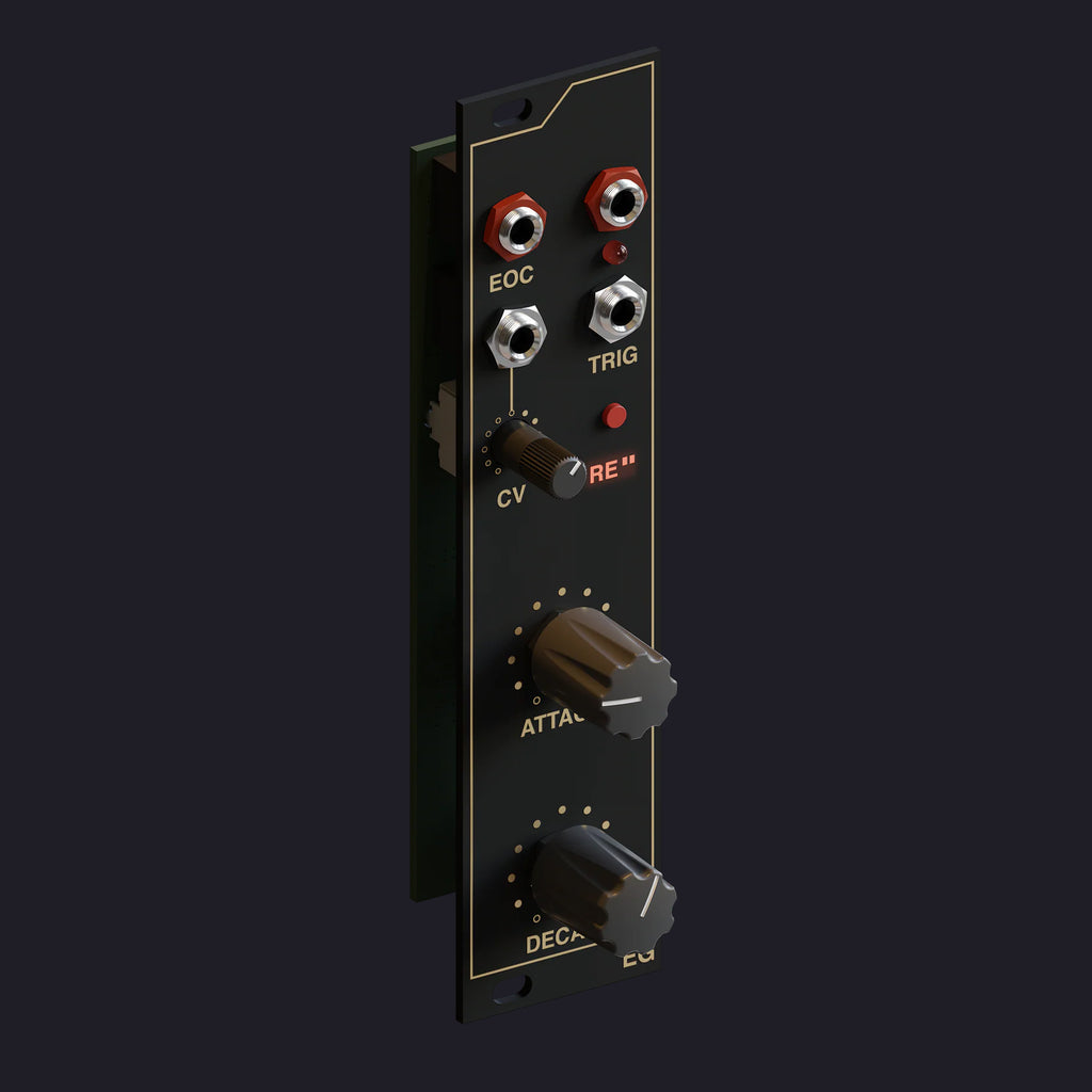 RE: "re-trig" はミニスイッチを押すたびにワンショットモードとリトリガーモードを切り替えます。ワンショットモードでは、EGは現在実行中のエンベロープサイクルが終了するまで、新たなトリガーに反応するのを待ちますが、リトリガーモードではエンベロープサイクルの途中でもトリガーに反応します。