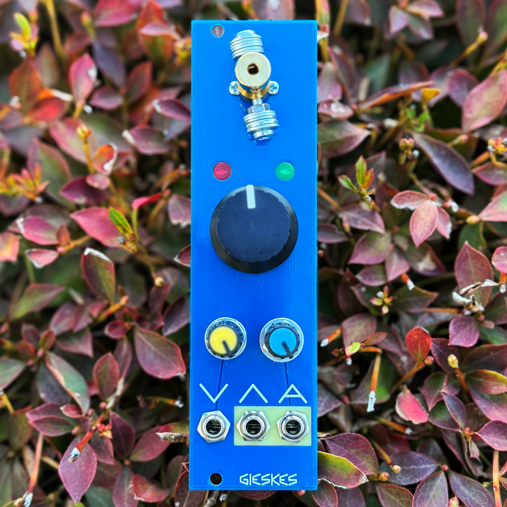 他のモジュールをコントロールする用途が中心です。大きなノブは操作しやすく、-10V〜+10Vの範囲を持っています。モーターを回すと電圧が上昇または下降し(左に回す=下降−、右に回す=上昇+)、モーターが止まると電圧は大きなノブで設定された位置まで戻ります。