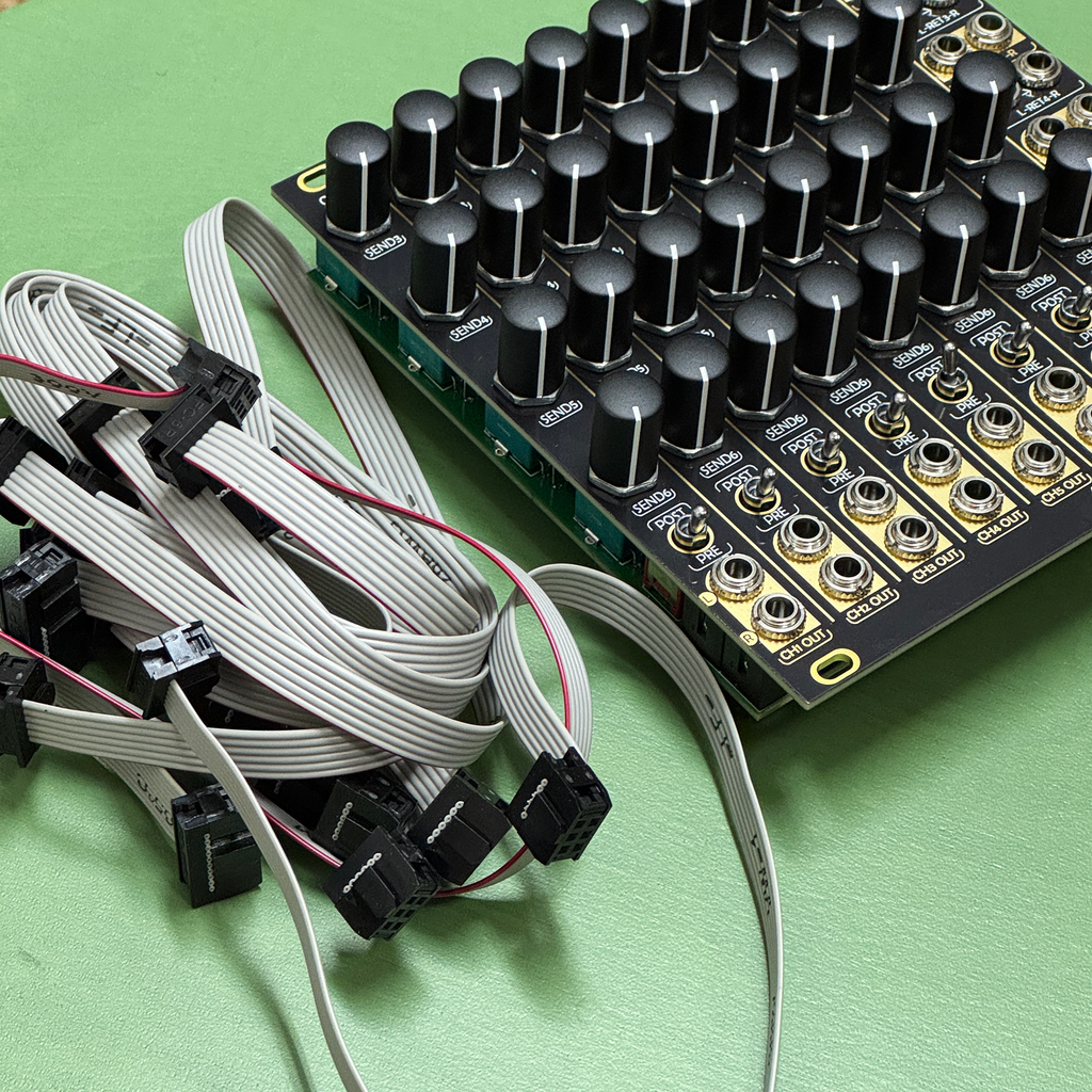 オーディオ信号をすべて接続するために、合計 9 本の 2×3 リボンケーブルと電源ケーブルを使用します(全て製品に付属しています)。